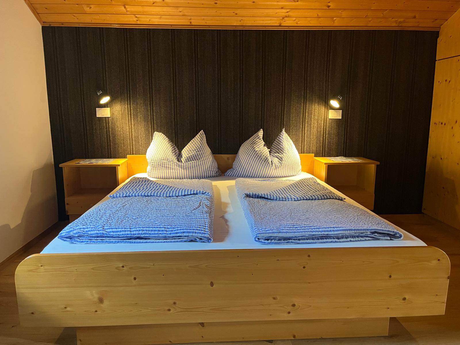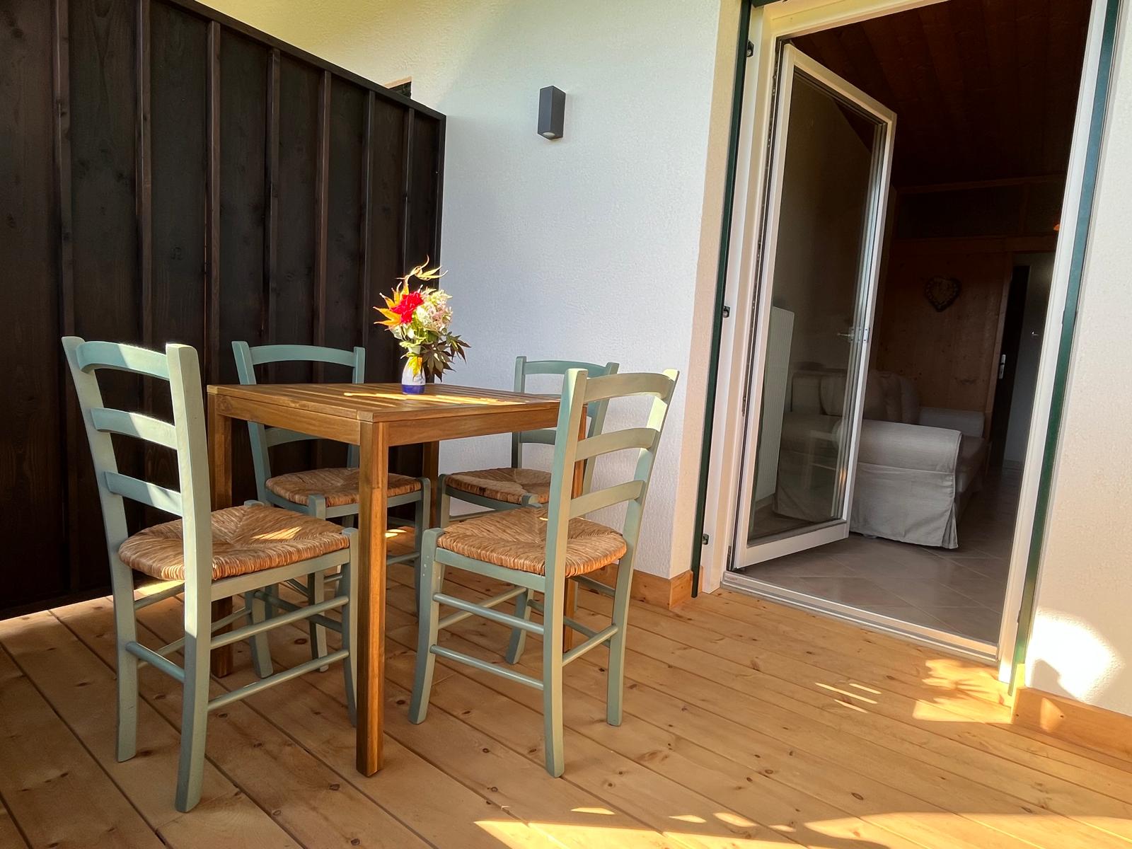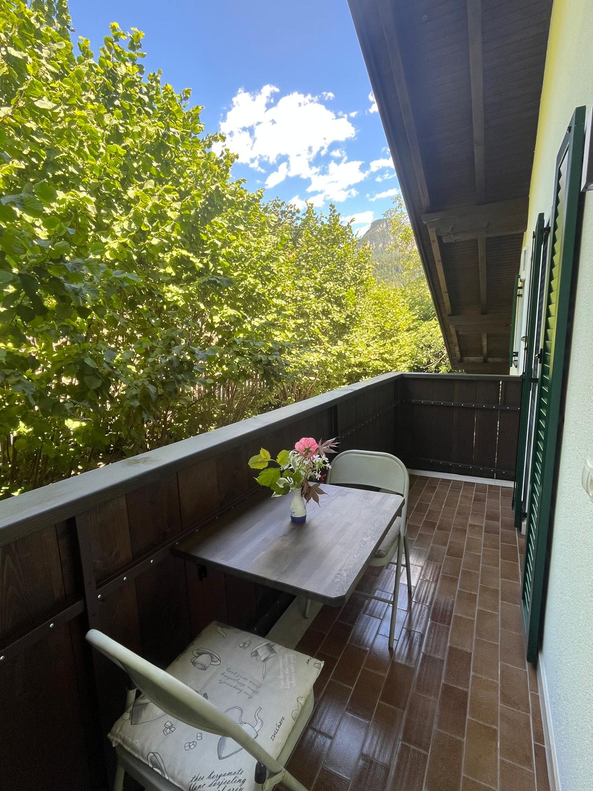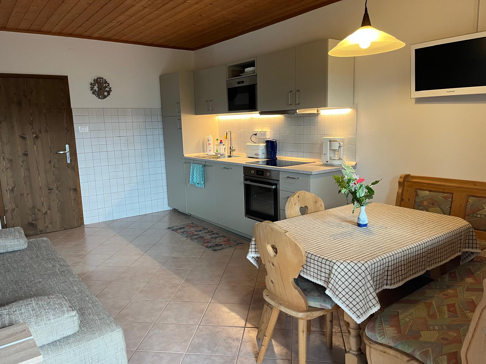 Die Wohnung Tschafon befindet sich im 1. Stock und verfügt über eine Wohnküche, 1 Schlafzimmer mit Doppelbett, 1 Bad mit Dusche und WC und einen Balkon mit Nordostausrichtung, auf dem Klapptisch und Stühle zum Frühstück in der Sonne einladen. In der Wohnküche befindet sich ein Esstisch- Bankensemble, welches man für eine dritte Person mit einem einfachen Handgriff in ein Bett verwandeln kann.Wohnung Hammerwand