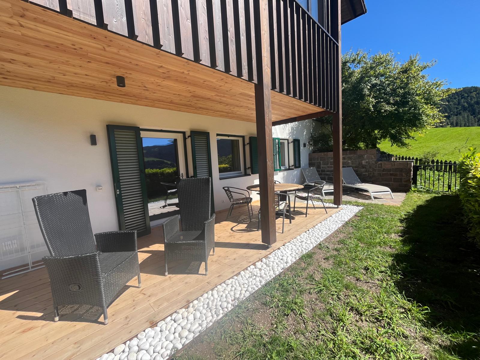 Die Wohnung Latemar liegt im Tiefparterre mit Südausrichtung und Talblick. Sie verfügt über 2 Schlafzimmer mit Doppelbett (eines davon mit zusätzlichem Schlafsofa), 1 großzügigen Wohnraum mit Küche, Esstisch und Polstergarnitur, 1 Bad mit Dusche und WC und einen Privatgarten mit Liegebetten und einem großen runden Tisch im Schatten eines Baumes.Preise